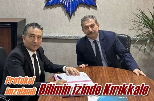 Kırıkkale’de gençlerin bilimsel merakını uyandıracak ve şehre yeni bir soluk getirecek olan “Bilimin İzinde Kırıkkale” projesi için imzalar atıldı. Millî Eğitim Müdürlüğü ile İl Emniyet Müdürlüğü arasında imzalanan iş birliği protokolüyle, TÜBİTAK 4007 Bilim Şenliği kapsamında dev bir adım atılmış oldu. İl Emniyet Müdürlüğü binasında gerçekleşen imza törenine; Millî Eğitim Müdürü Rahmi Güney ile Emniyet Müdürü Mustafa Işık katıldı. Şehrin geleceğini şekillendirecek bu iş birliğiyle, bilimin sadece laboratuvarlarda değil, hayatın her alanında hissedilmesi hedefleniyor.