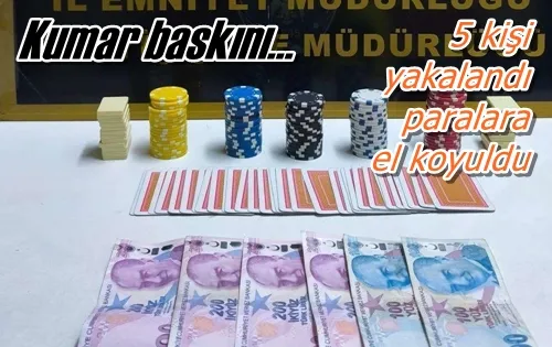 Kırıkkale’de kumar oynandığı belirlenen bir derneğe düzenlenen polis baskınında 5 kişi suçüstü yakalandı. Kumar oynayan şahıslara 11 bin 604'er lira idari para cezası uygulandı.