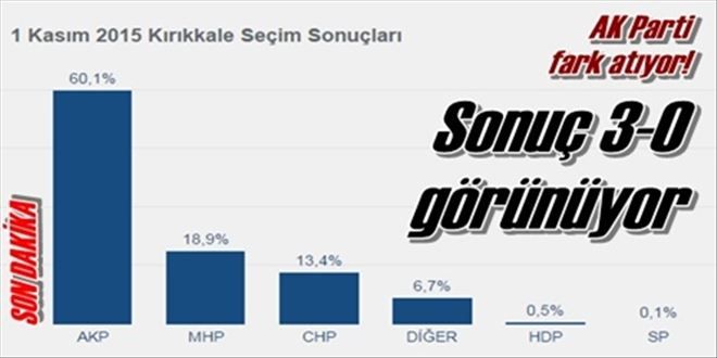 1 Kasım seçiminin sonuçları gelmeye başladı. Sonuçlara göre AK Parti Kırıkkale´de de Türkiye genelinde de rakiplerine fark atmış görünüyor.