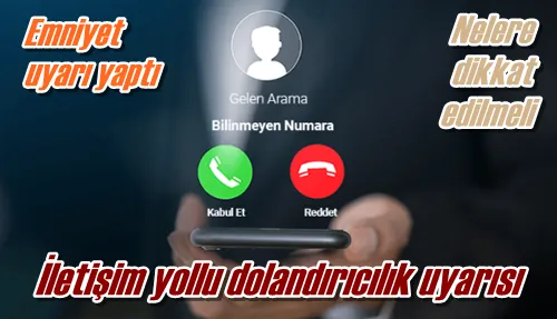 Emniyet Müdürlüğü iletişim yoluyla dolandırıcılık konusunda hem bilgilendirme yaptı ve hem de uyarılarda bulundu. Konuyla ilgili açıklama yayınlayan müdürlük şu bilgileri verdi: “Dolandırıcılık suçu en genel anlamıyla, bir kişiyi çeşitli hilelerle aldatarak, kendisine ya da başkasına menfaat sağlamak amacıyla yapılan kasıtlı eylemlerdir. Dolandırıcılık suçu, türlerine göre farklılık göstermektedir. Ülkemiz genelinde en yaygın olarak karşılaşılan dolandırıcılık yöntemi “İletişim Yoluyla Dolandırıcılık” şeklinde gerçekleştirilen ve telefon yoluyla yapılan dolandırıcılıktır.