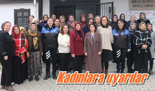 Kırıkkale Belediyesi bünyesinde hizmet veren ve kadınların sosyal ve ekonomik hayata katılımını destekleyen Mahalle Konakları, eğitim çalışmalarına bir yenisini daha ekledi. Kaletepe Mahalle Konağı’nda devam eden kurslara katılan kadın kursiyerler, Kırıkkale İl Emniyet Müdürlüğü ekipleriyle bir araya geldi. Toplum Destekli Polislik Şube Müdürlüğü ekipleri tarafından gerçekleştirilen ziyarette, kadınların maruz kalabileceği şiddet olaylarına karşı hızlı müdahale imkanı sağlayan KADES (Kadın Destek Uygulaması) detaylı bir şekilde anlatıldı.